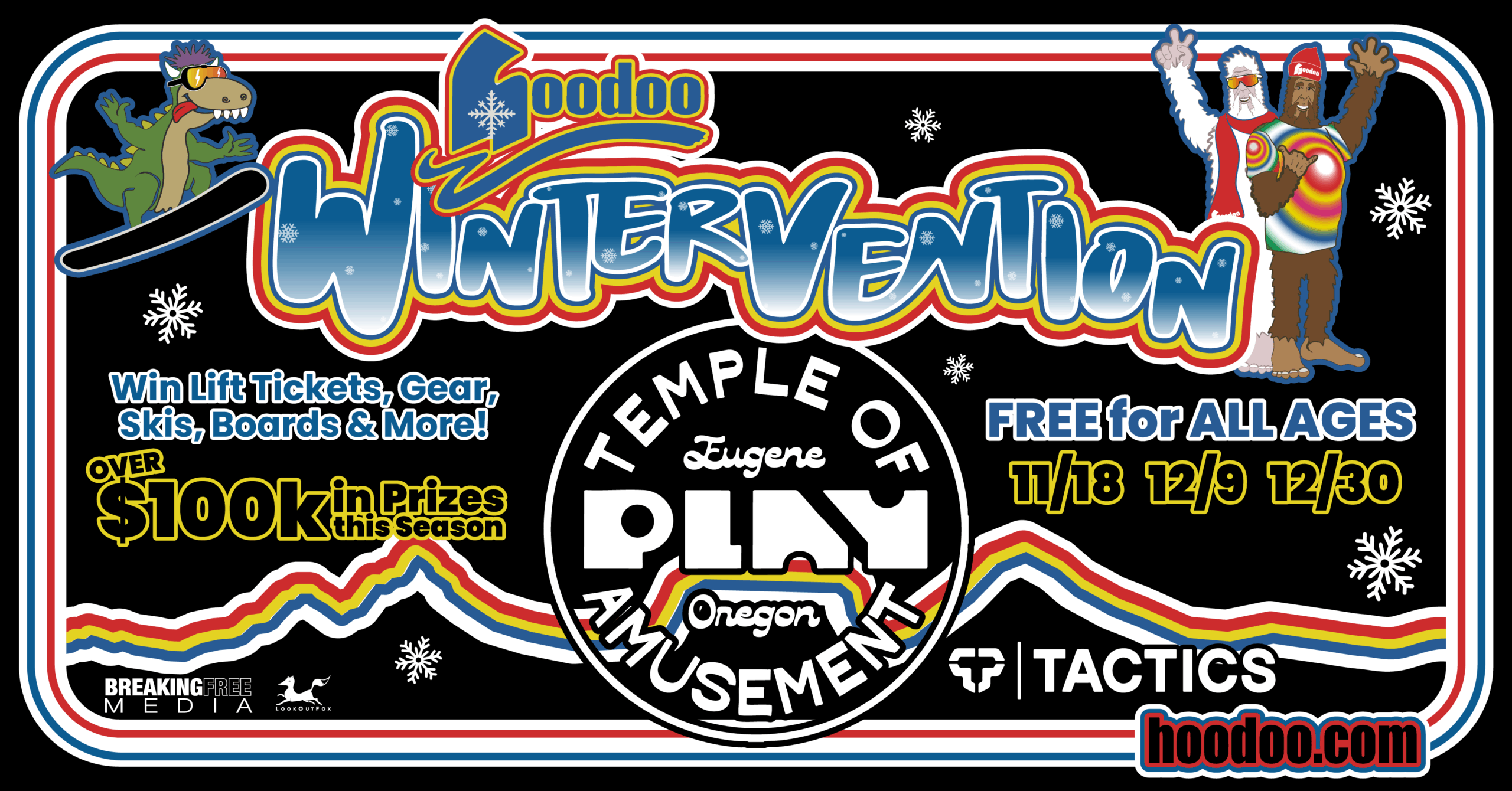 It’s the biggest yard sale ever…Hoodoo’s Wintervention presented by Volvo Cars Bend. It’s the Pacific Northwest’s deepest snow series giveaway and it’s coming to a venue near you. Get geared up this season as we dump 100K in’ prizes including lift tickets, gear, skis, boards, and more.  FREE EVENT – ALL AGES WELCOME – Here’s where to find KPNW this season!